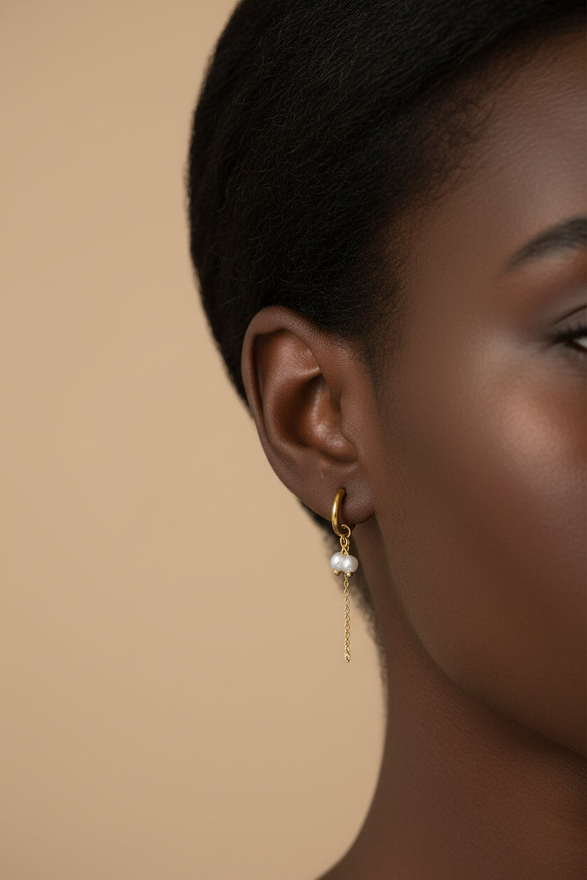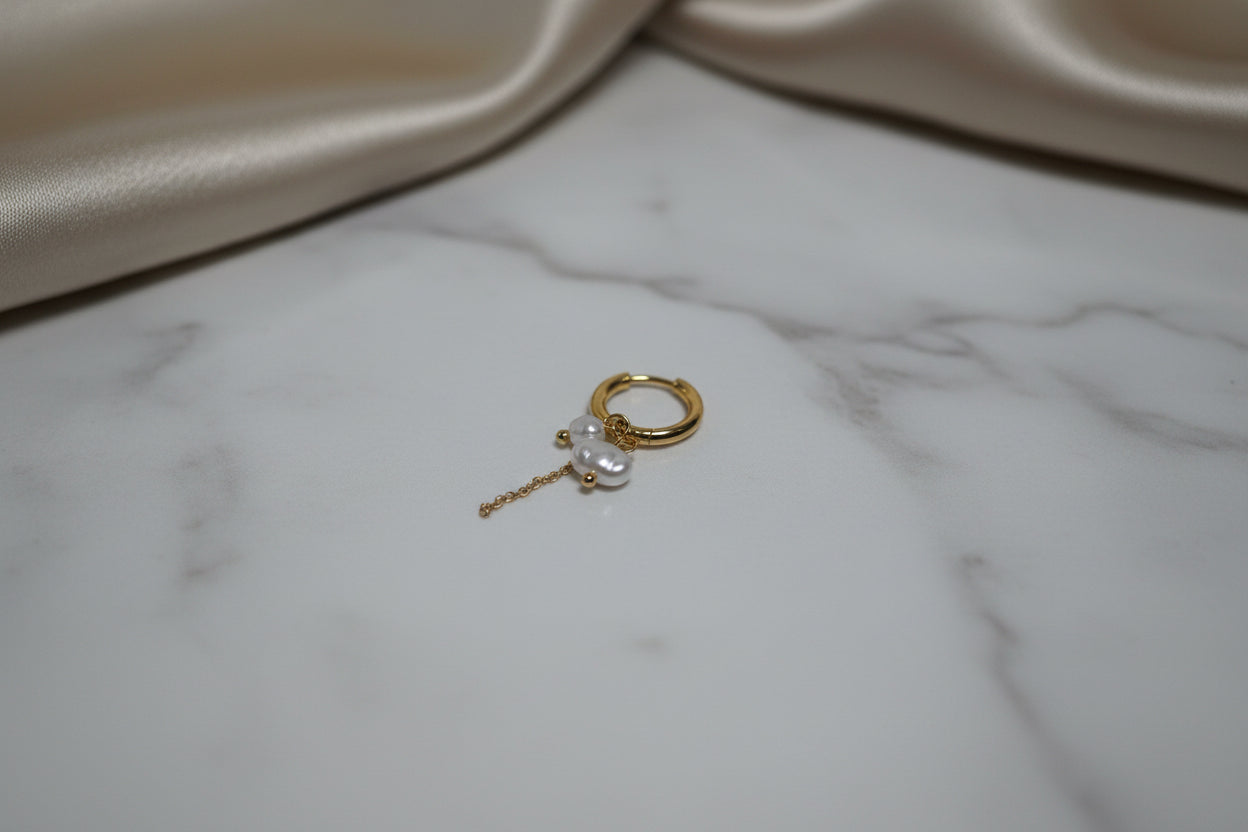 Orecchino cerchio Clicker con 2 perle e catenella