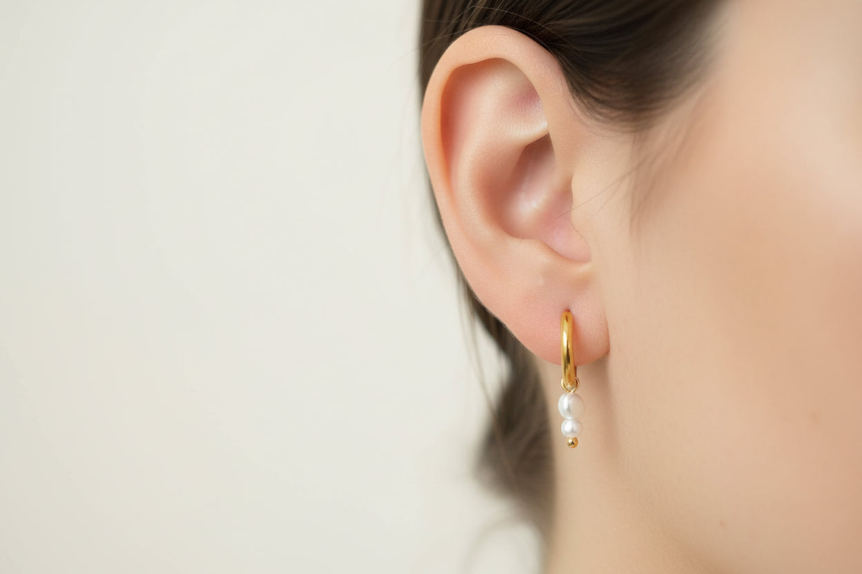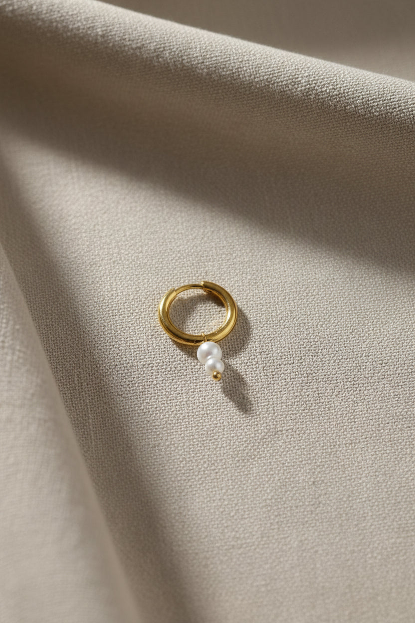 Orecchino cerchio Clicker con due perle più grande e più piccola